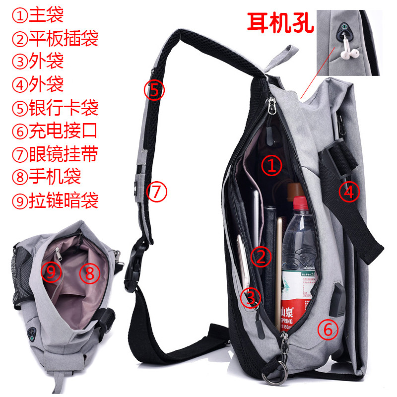 New men's chest bag casual oblique backpack Oxford cloth fashion large capacity backpack sports Korean fashion men's bag