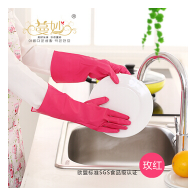 Manmiao kitchen laundry waterproof durable type women's thin rubber rubber leather odorless cleaning dishwasher home gloves small