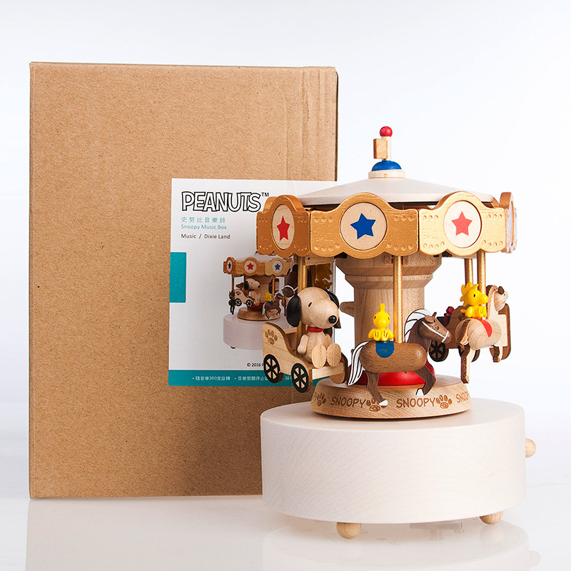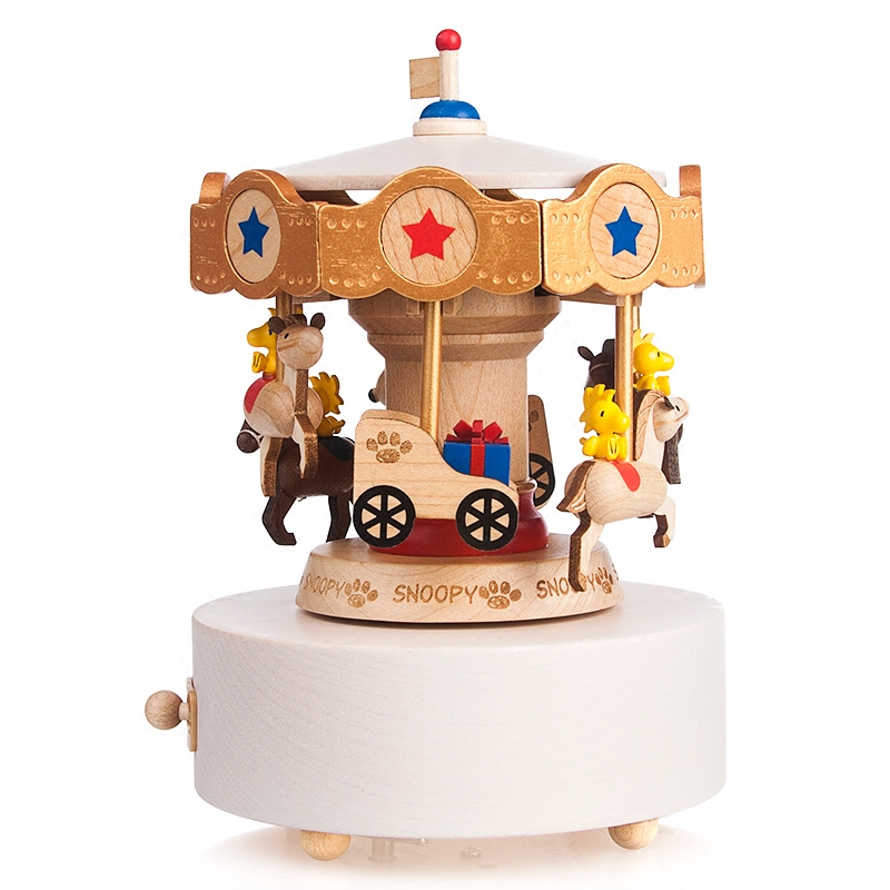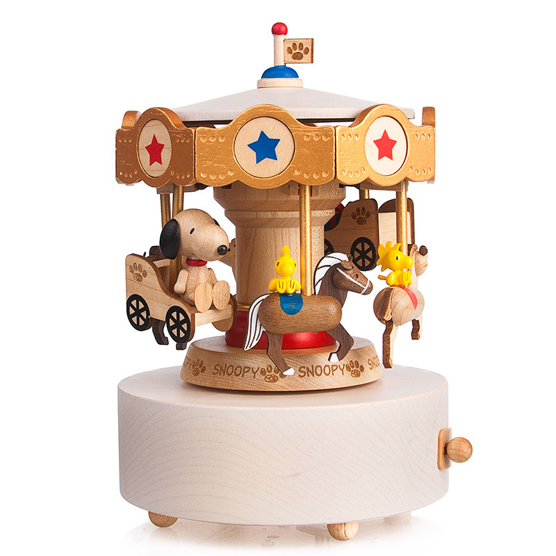 Jeancard Wooden Music Box Christmas Children's Birthday Gift Creative Snoopy Spins Trojan Eight-Sound Box