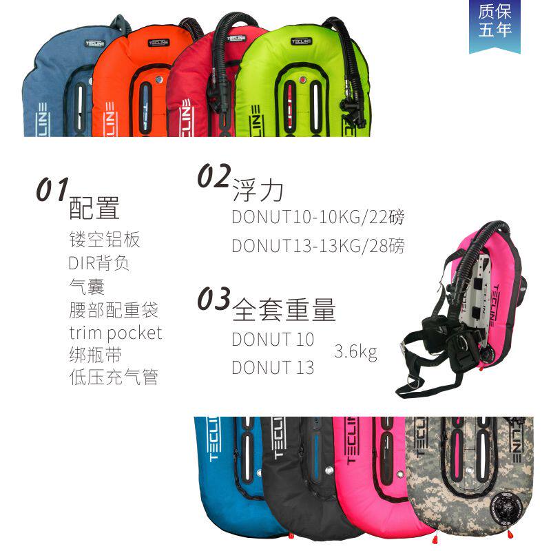 Tecline Donut 13 10 Technical Diving Backflight DIR BCD 28 lbs with Counterweight Bag Low Pressure Pipe