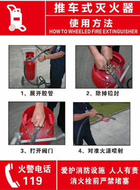 Trolley type fire extinguisher use method cart-type fire extinguisher use method 2