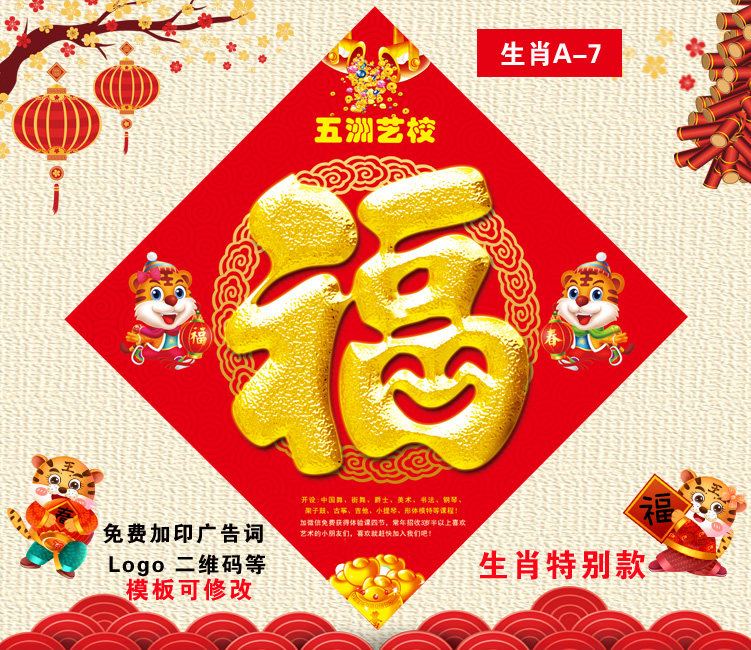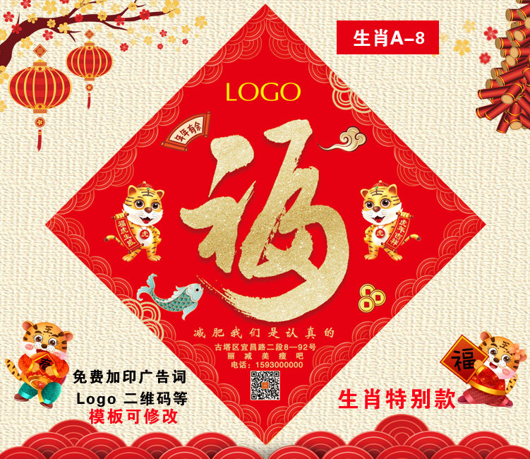 2022 Tiger Year Advertising Fu Character Custom Print to do the logo Advertisement of the Spring Festival couplets and make custom fu characters