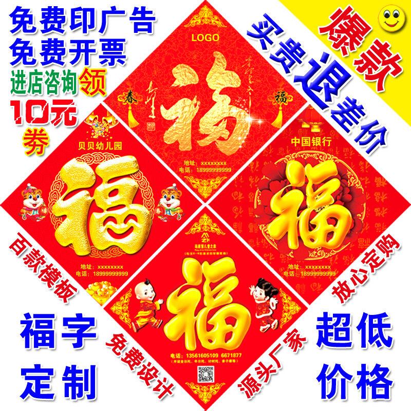 Custom Fu Character Door Post Special Edition Print Advertising Fu Character Custom Logo to do corporate corporate red envelope for couplets