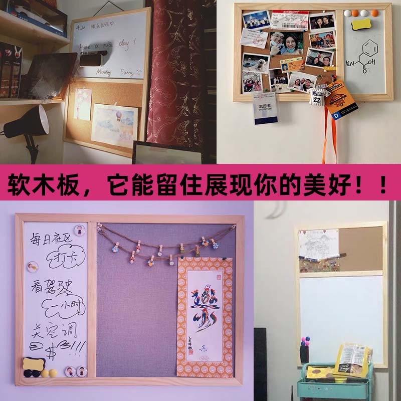 Solid Wood Frame Multifunction Composition Whiteboard Soft Wood Board Blackboard Home Photo Wall Creativity Custom Convenience Sticked Matter Wall Board