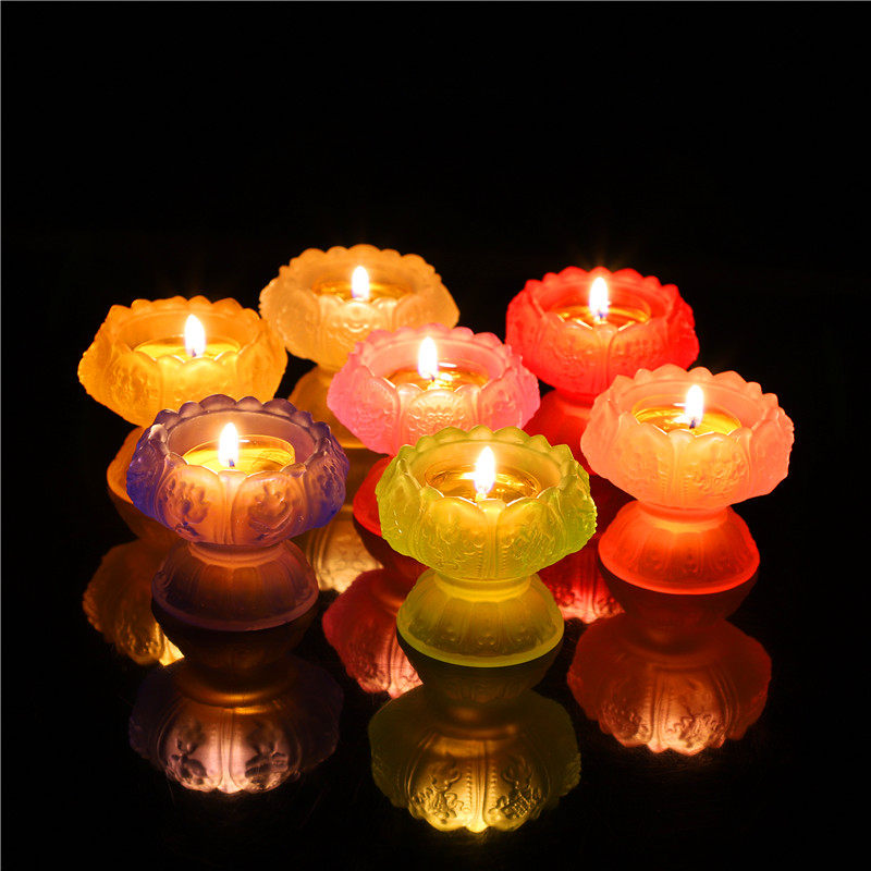 Colorful colored glaze eight auspicious lotus butter lamp holder candle holder lamp holder for Buddha lamp long light candle holder ornaments