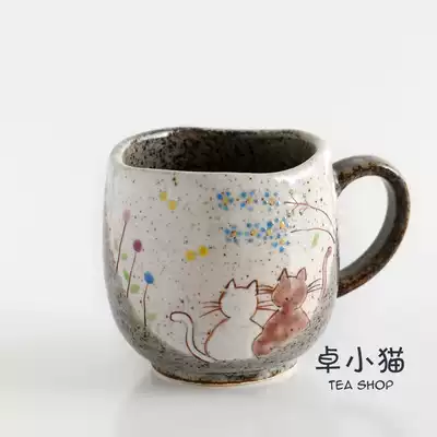 Japan imported Kutani pottery mug Couple little cat Dark retro water cup Coffee cup Japanese style