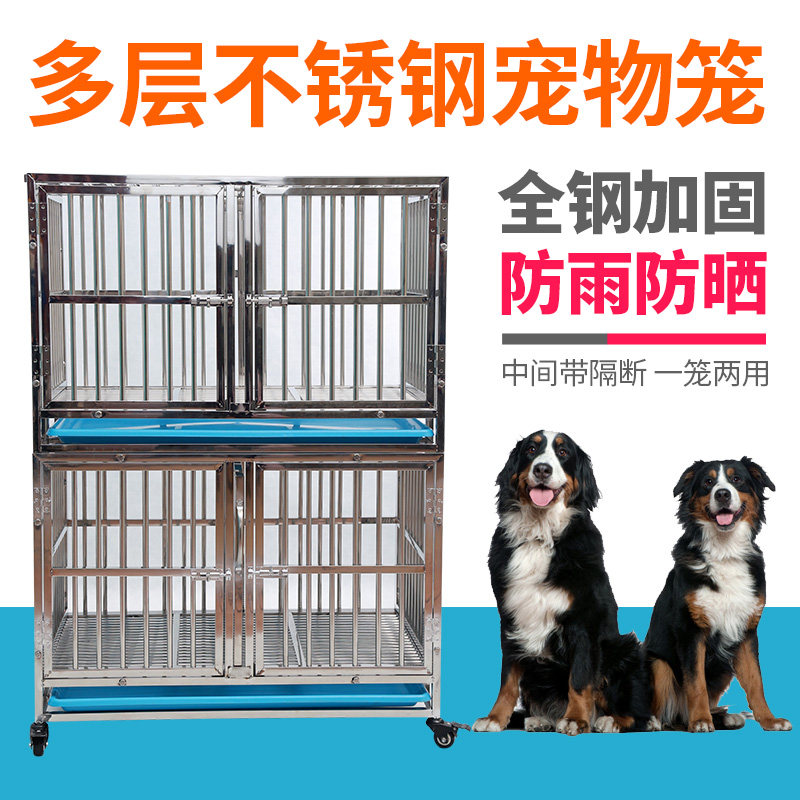 Bold stainless steel dog cage small dog Teddy golden hair Samoye Labrador three-layer mother pet cage