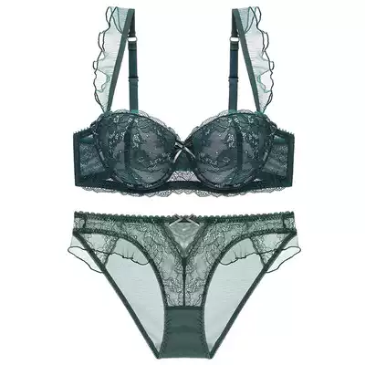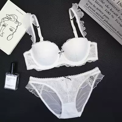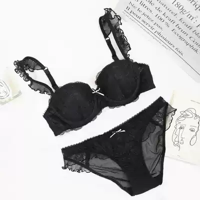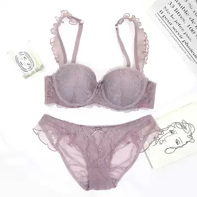 French sexy lace edge small chest gathering bra can insert Cup comfortable steel ring bra underwear set