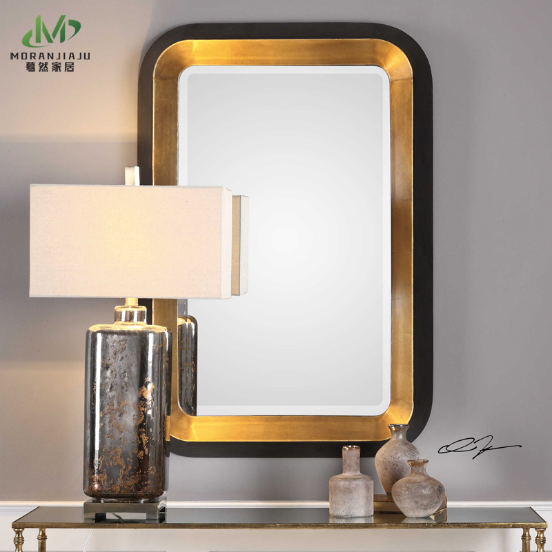 Square black and gold American bathroom mirror Entrance mirror Decorative bathroom bedroom dressing mirror European classical M619