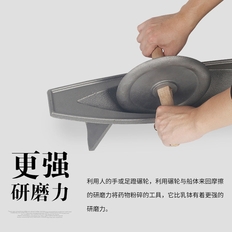 Pig iron medicine ship Solid medicine grinding tank Cast iron Chinese medicine mill Twist thickened trumpet stick grinder