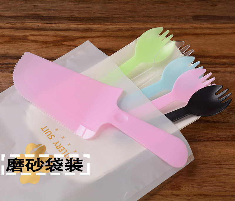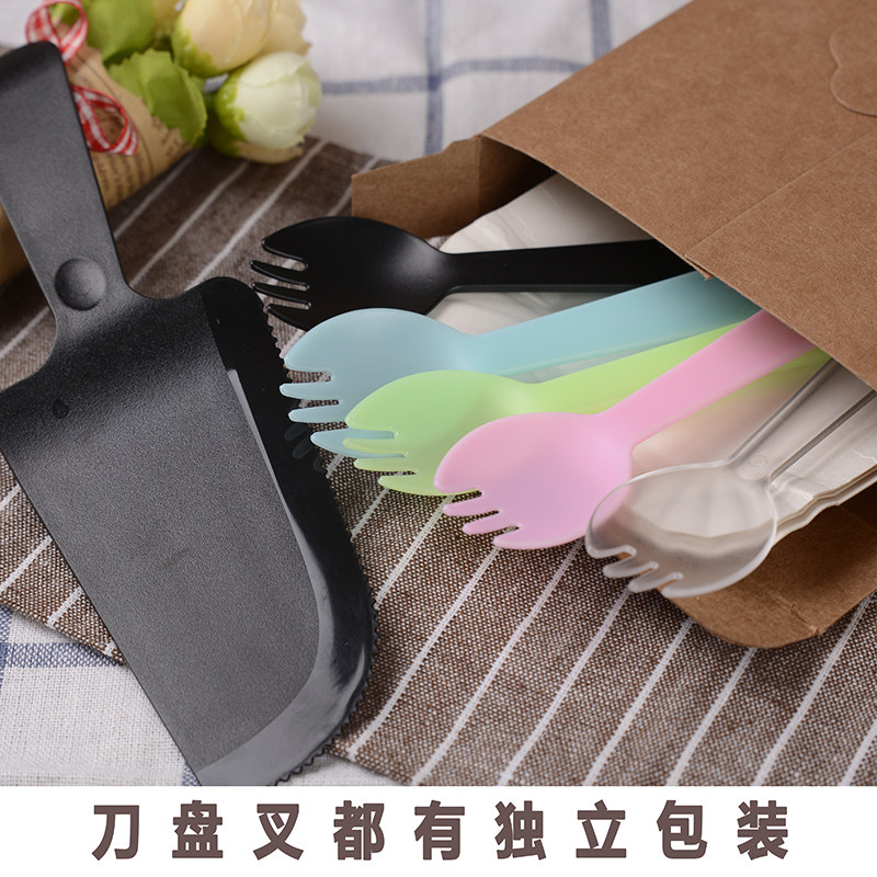 Birthday cake knife and fork plate set Plastic plate and fork paper plate tableware set Disposable knife and fork set wholesale