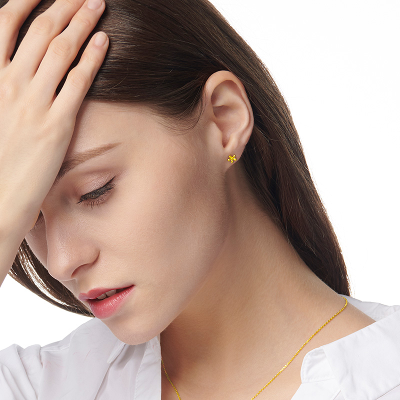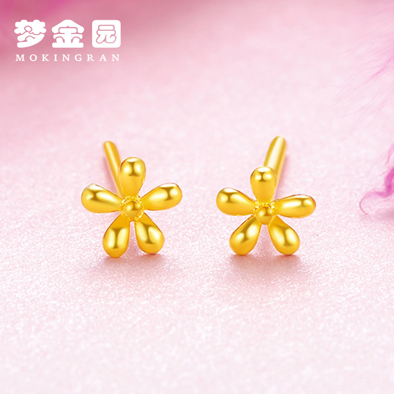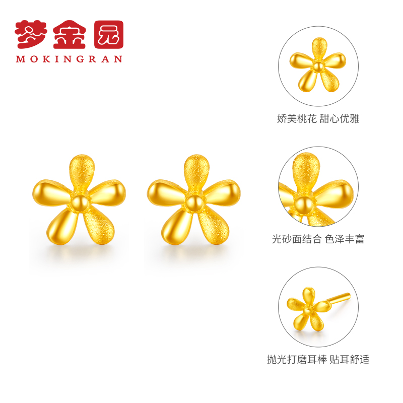 Dream gold garden foot gold 9999 gold earrings mini-raised earrings Peach Blossom Series Earrings Earrings BIRTHDAY PRESENTS