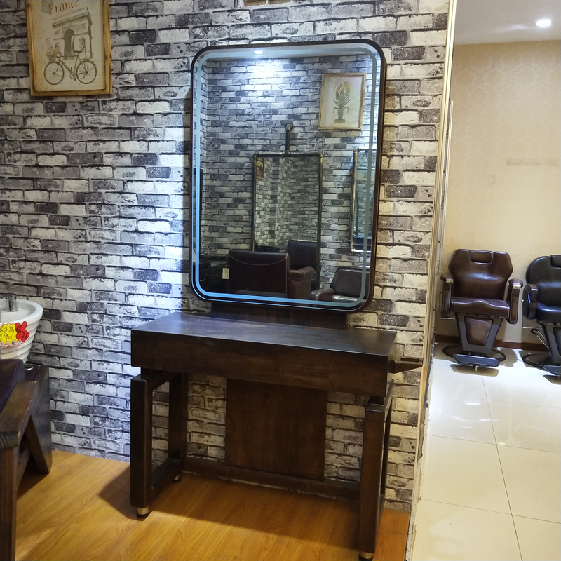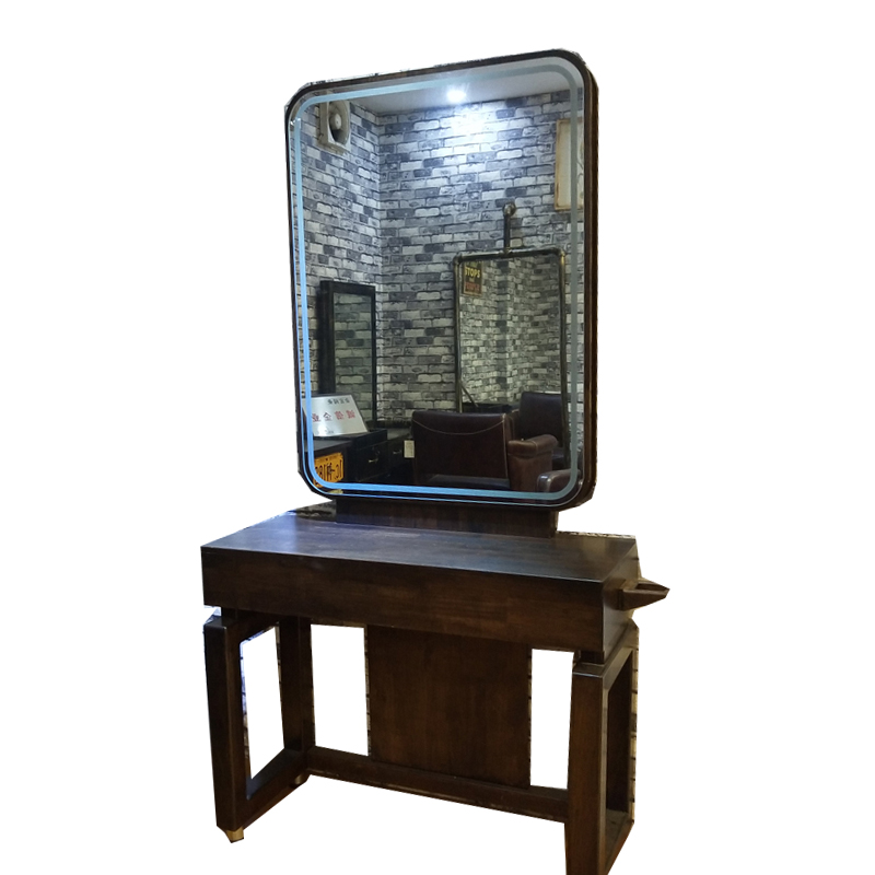 Barber shop new solid wood with lamp single-sided double-sided hair mirror table Four-sided mirror hair-cutting mirror Barber shop makeup mirror table