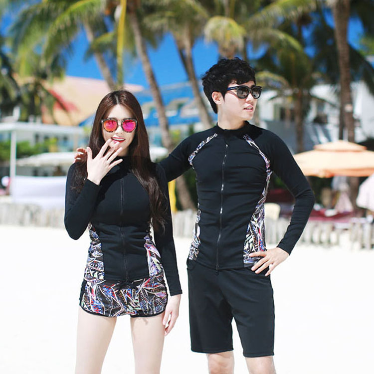 Korean wetsuit Men and women couple suit Trousers long-sleeved two-piece zipper snorkeling swimsuit thin sunscreen jellyfish