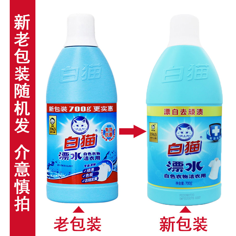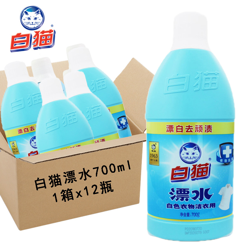 White cat bleaching water 700g white clothes to yellow and whitening agent bleaching water to remove stains and disinfect a box of 12 bottles
