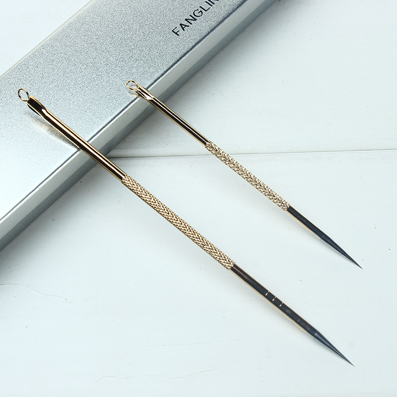 Fangling 2 packs of stainless steel powder Lancet To Black Head Fat Grain Squeeze Pimple Pimple Pimple Pimple Dark Sore Needle Beauty Tool