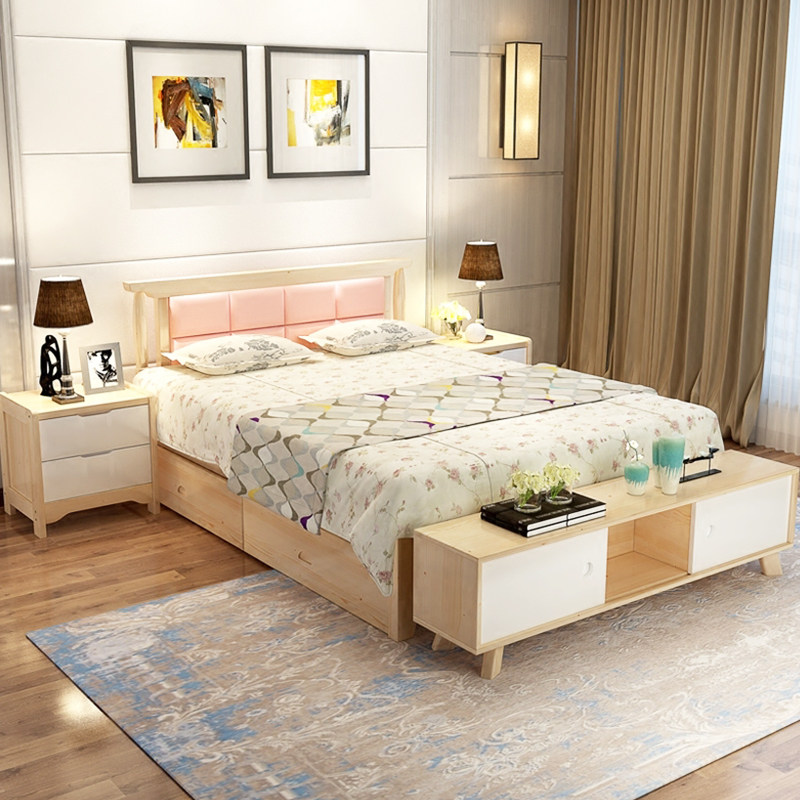 Nordic Solid Wood Bed 1 5m Single Double Adult 1 2 Mediterranean Soft Package 1 8 m Modern minimalist Master's bed