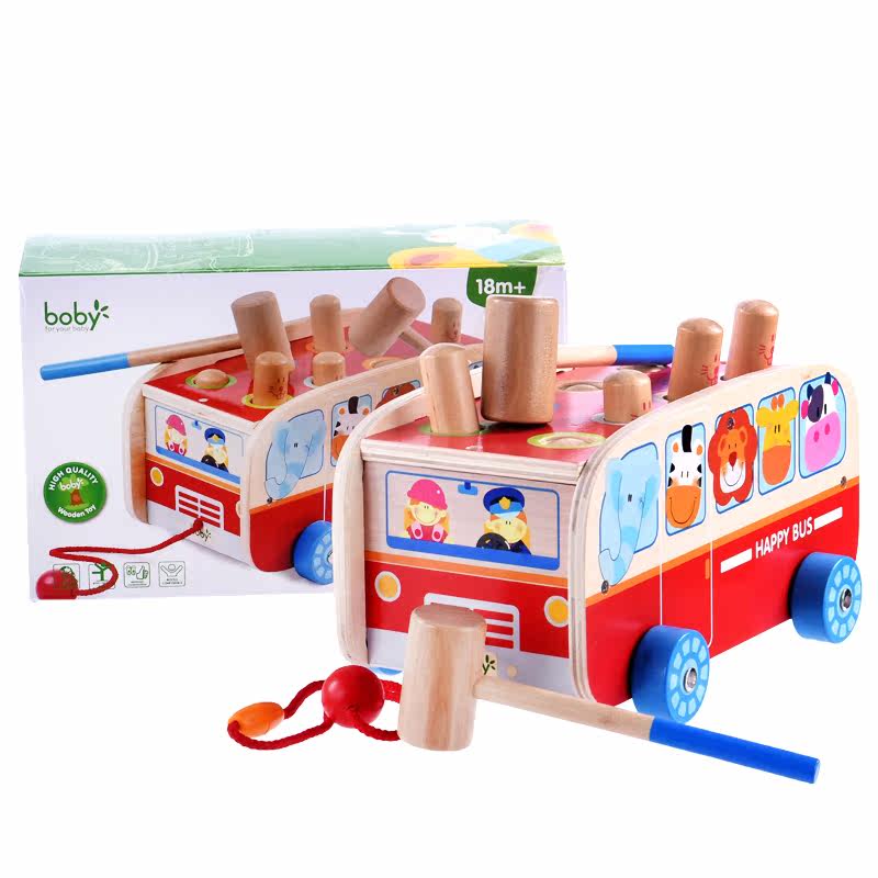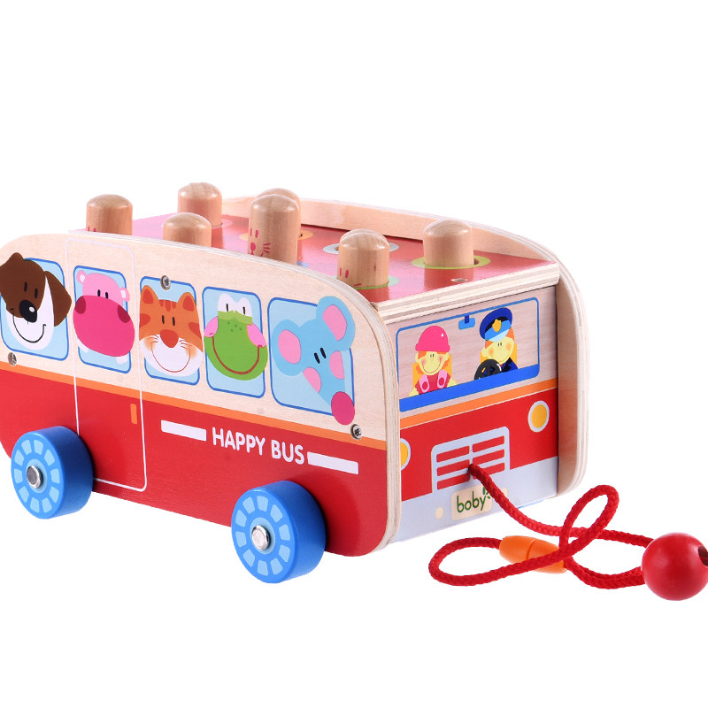 Children's toy wooden toy hit the ground rat Knocks the Leg dragging trolley for 6-12 months