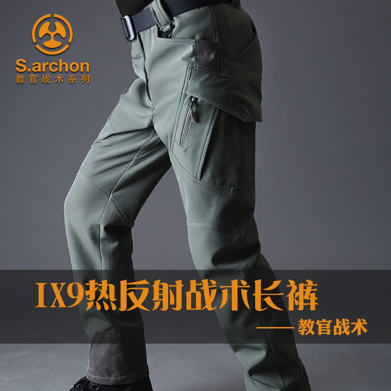 Outdoor soft shell heat reflective assault pants men's winter thick fleece warm windproof ski pants military fans mountaineering trousers