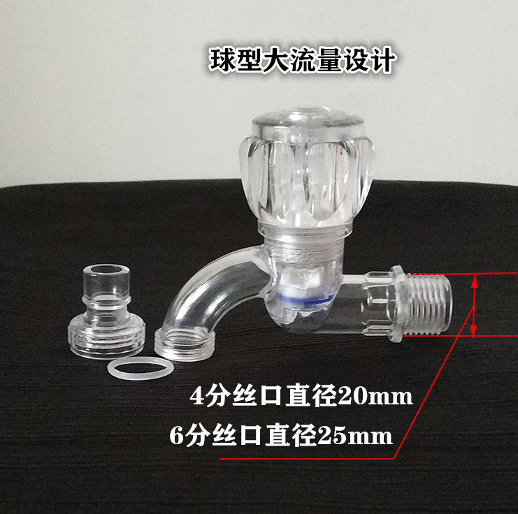 Transparent tap Cold and hot water food grade high flow plastic tap PC antifreeze resistance high temperature 4 minutes 6 points