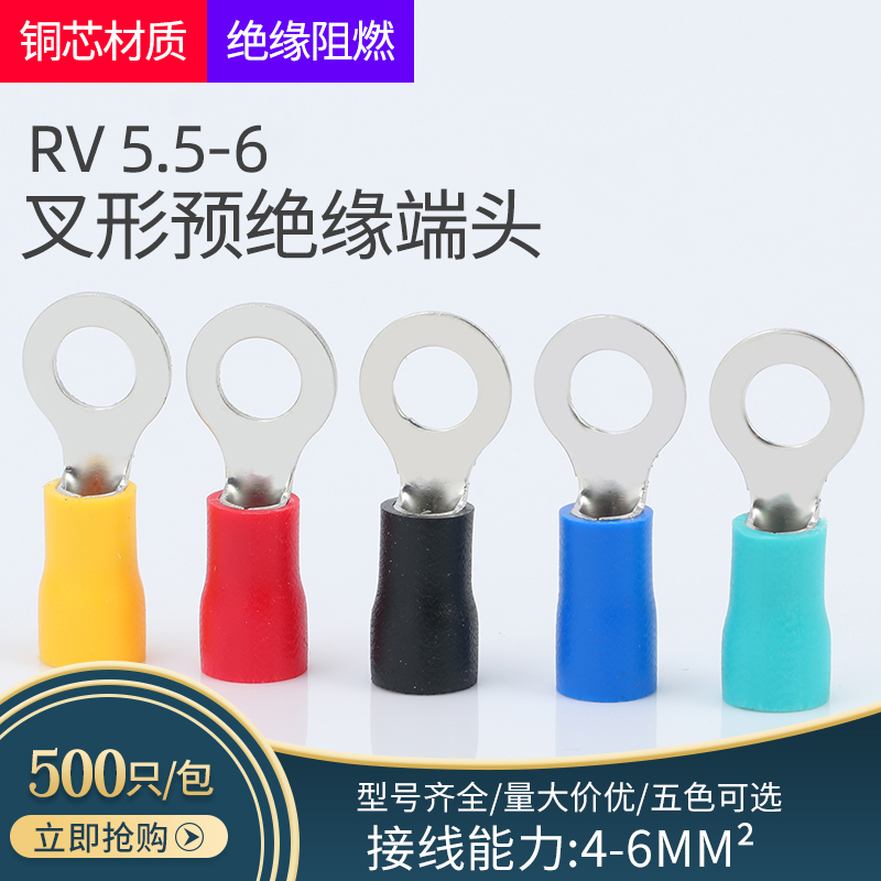 RV5 5-6 round pre-insulated terminals 4-6 squared cold pressed wiring terminals O-copper wiring terminals 500 only