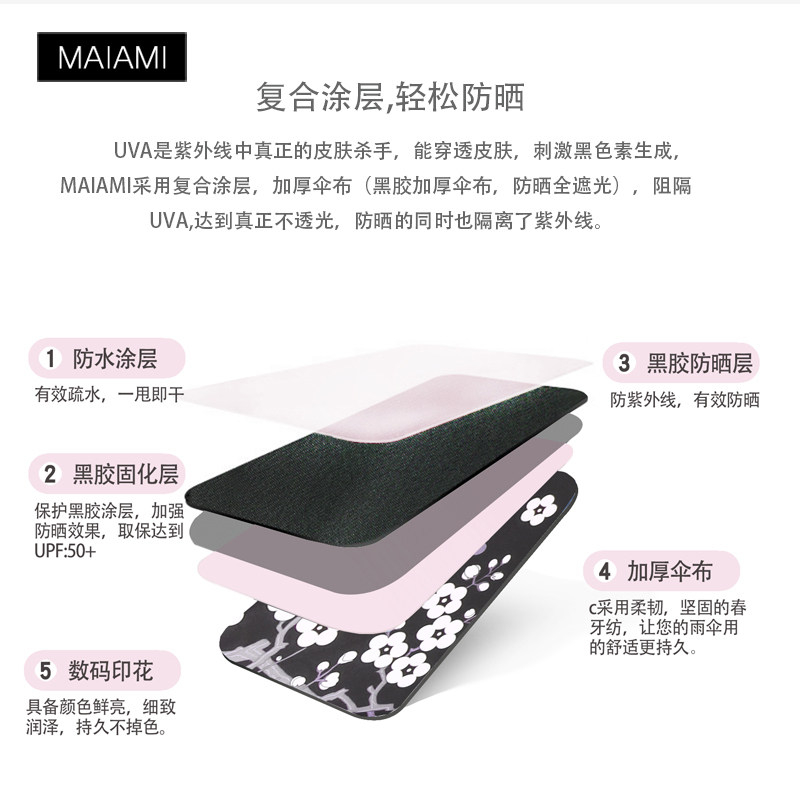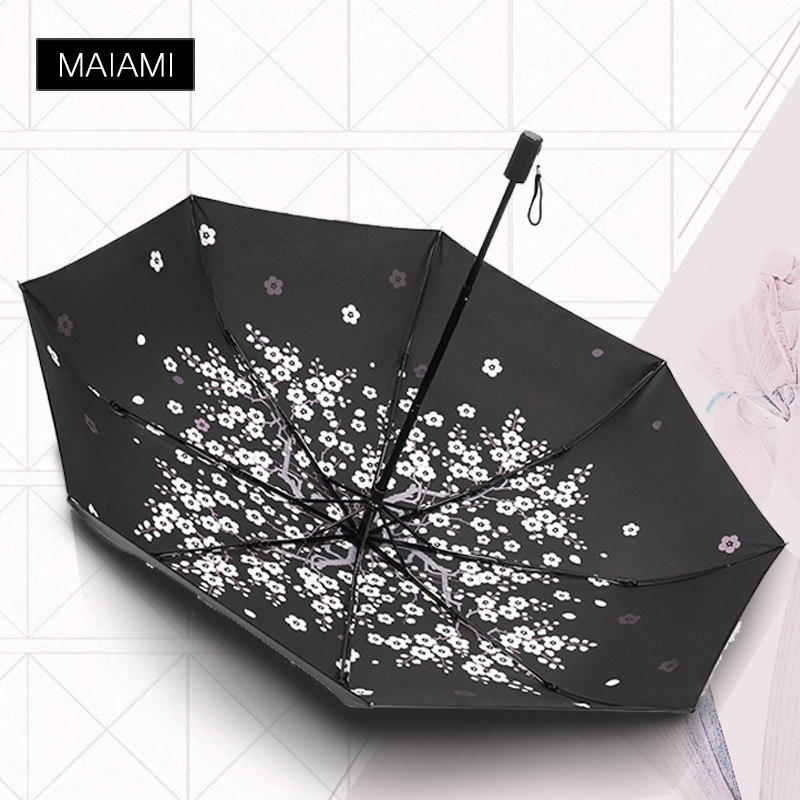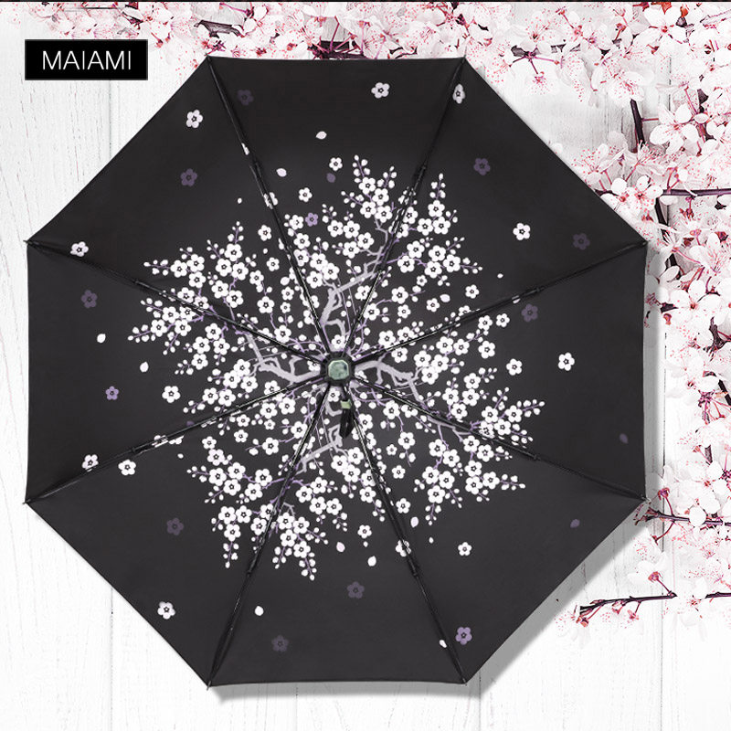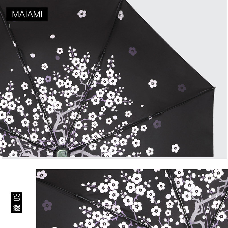 Sun-umbrella anti-UV sunshade female plum-flower sunny umbrella Dual-use sunscreen with small black rubber umbrella retro fresh
