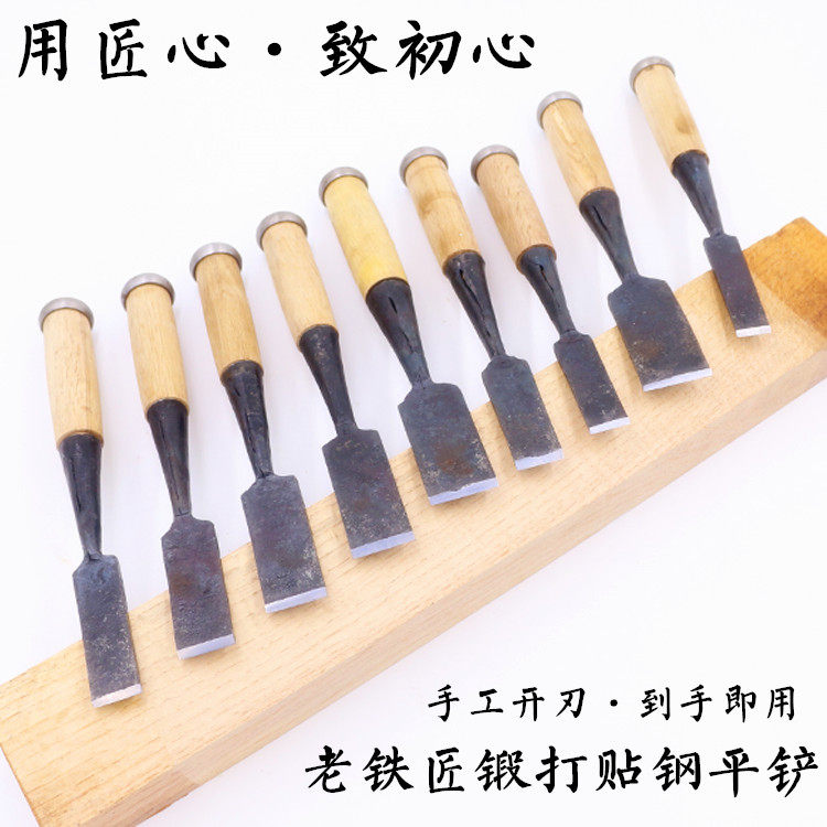 Hand forged and affixed steel chisel flat shovel Woodworking chisel Woodworking calcined flat shovel Neutral shovel Tenon and mortise woodworking tools