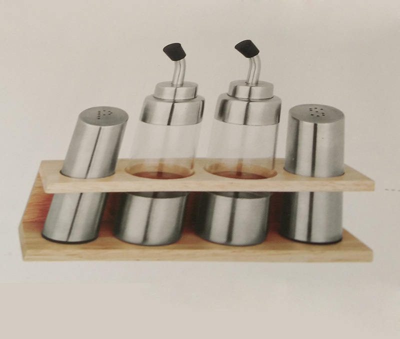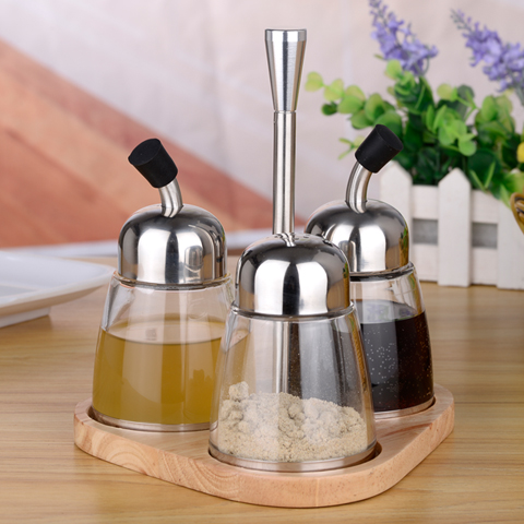 Wood Seat 304 Stainless Steel Glass Seasoning Jar High Boron Silicon Acrylic Seasoning Home Commercial Sauce Bottle Suit