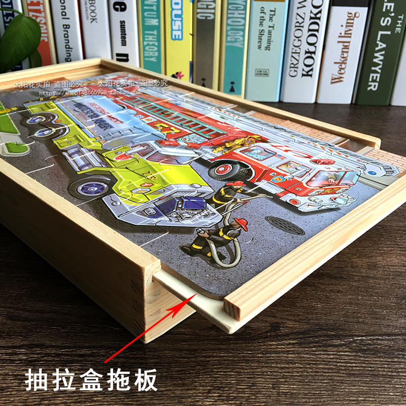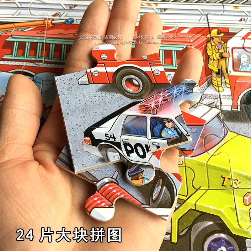 Children 24 pieces big pieces puzzle wooden boy fire truck Jigsaw Puzzle Boxed Toys Early Lessons Intelligence Baby Gift