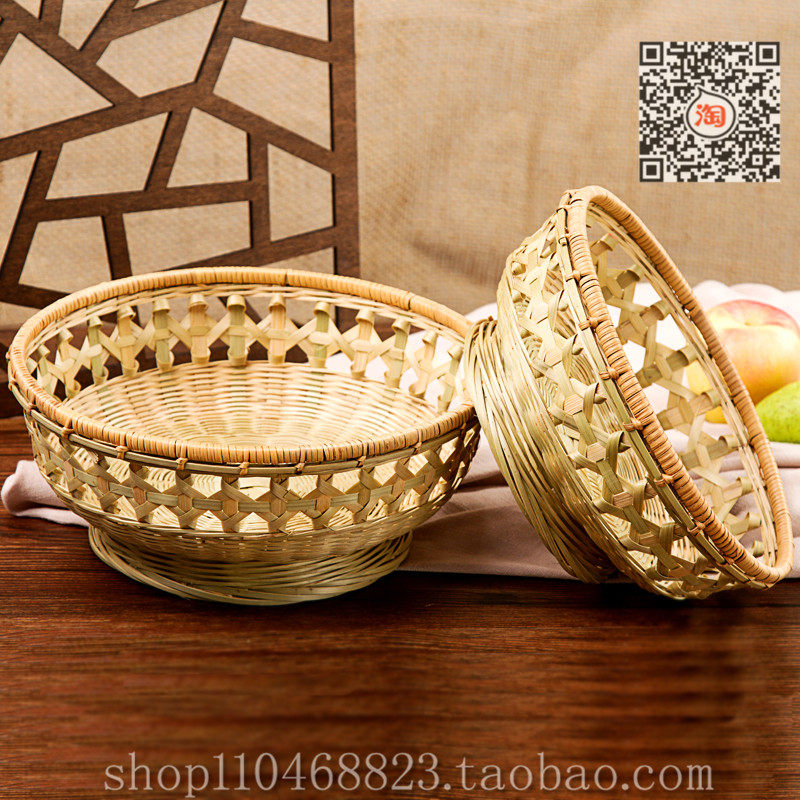 Bamboo woven fabric Steamed bun basket Fruit basket Farmer's characteristic pure hand woven tray storage bamboo basket Bamboo basket bowl
