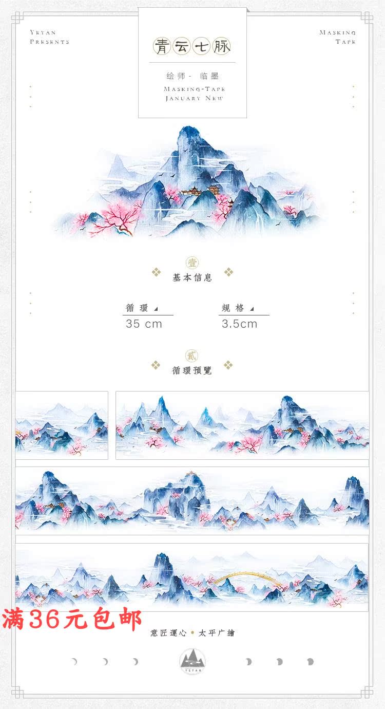 (Collect the spring light)Shale group Qingyun seven veins and paper tape loop sub-pack hand account sticker