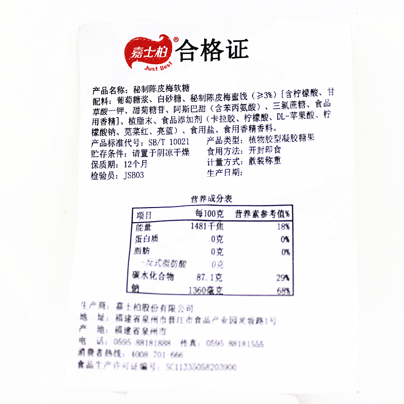 Glucose Syrup White Sugar Secret Tangerine Peel Plum Preserves (≥3)