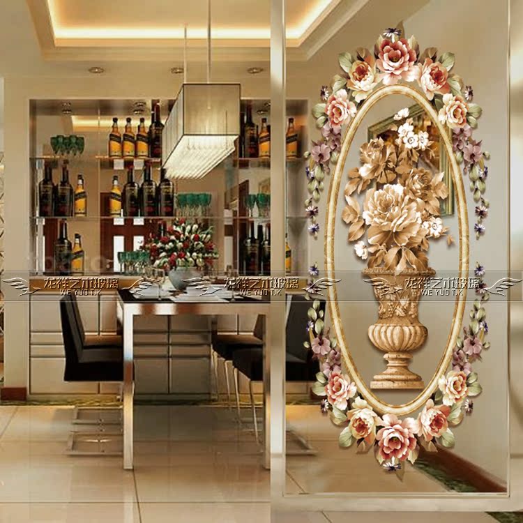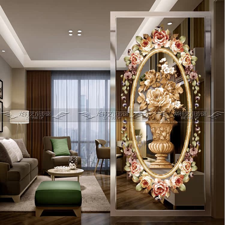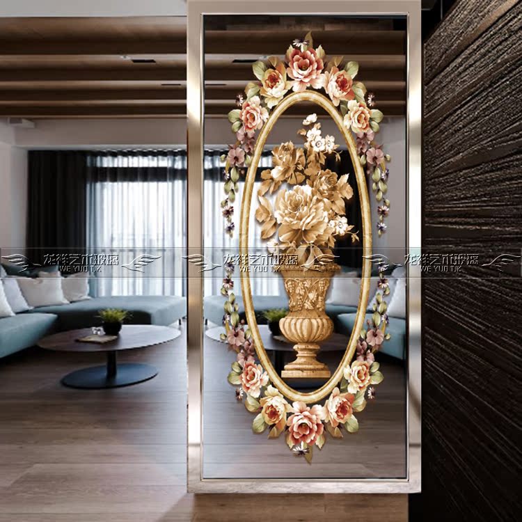 Minimalist 3D Cubist Flowers Fresco Genguan Art Glass Living Room Background Wall Dining Hall Aisle Hallway Screen Partition