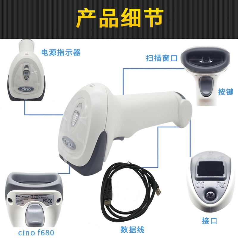 CINO Taiwan Weisi F680 one-dimensional wired image scanner Red light scanner Mobile payment code Warehouse logistics scan code Convenience store pharmacy clothing tag scan WeChat health insurance