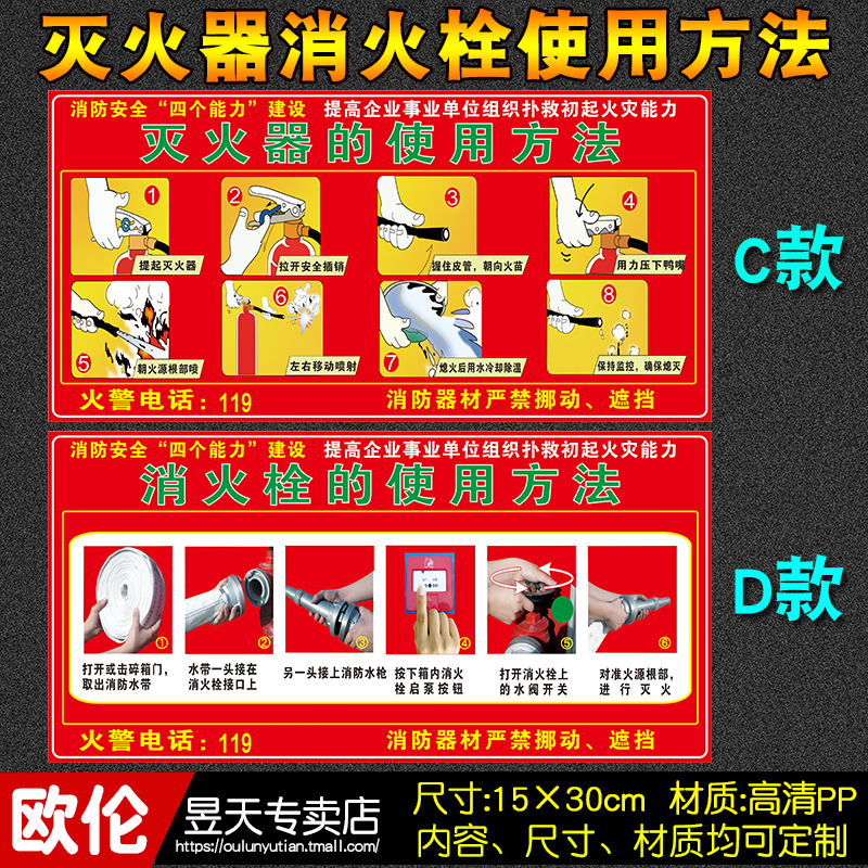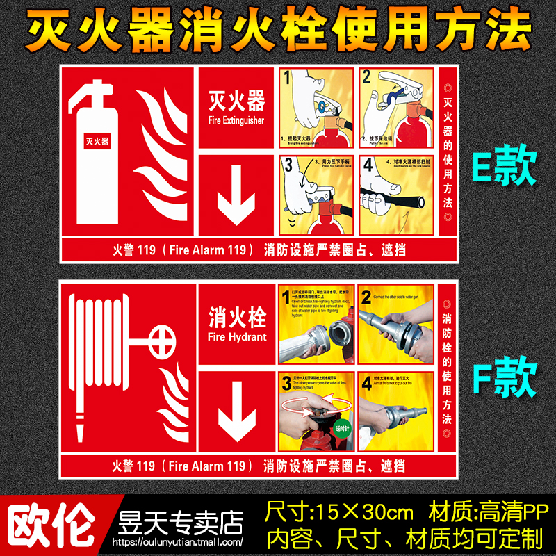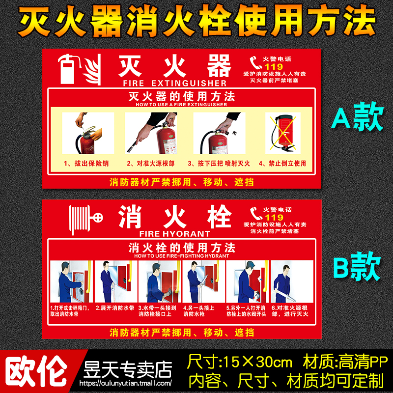 Cart type fire extinguisher placement point sticker Fire hydrant use method description Fire hydrant box safety sign card No smoking safety sign sign warning sign Warning sign customization