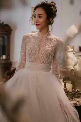 Light bride court wedding dress forest 2021 new trailing European and American princess fantasy winter one-shoulder long-sleeved