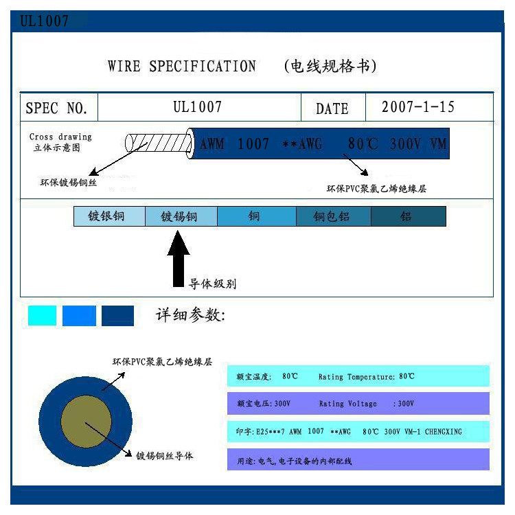 Factory direct sales PVC environmental protection tinned copper electronic wire ULAmerican1007 20AWG electronic connection cable