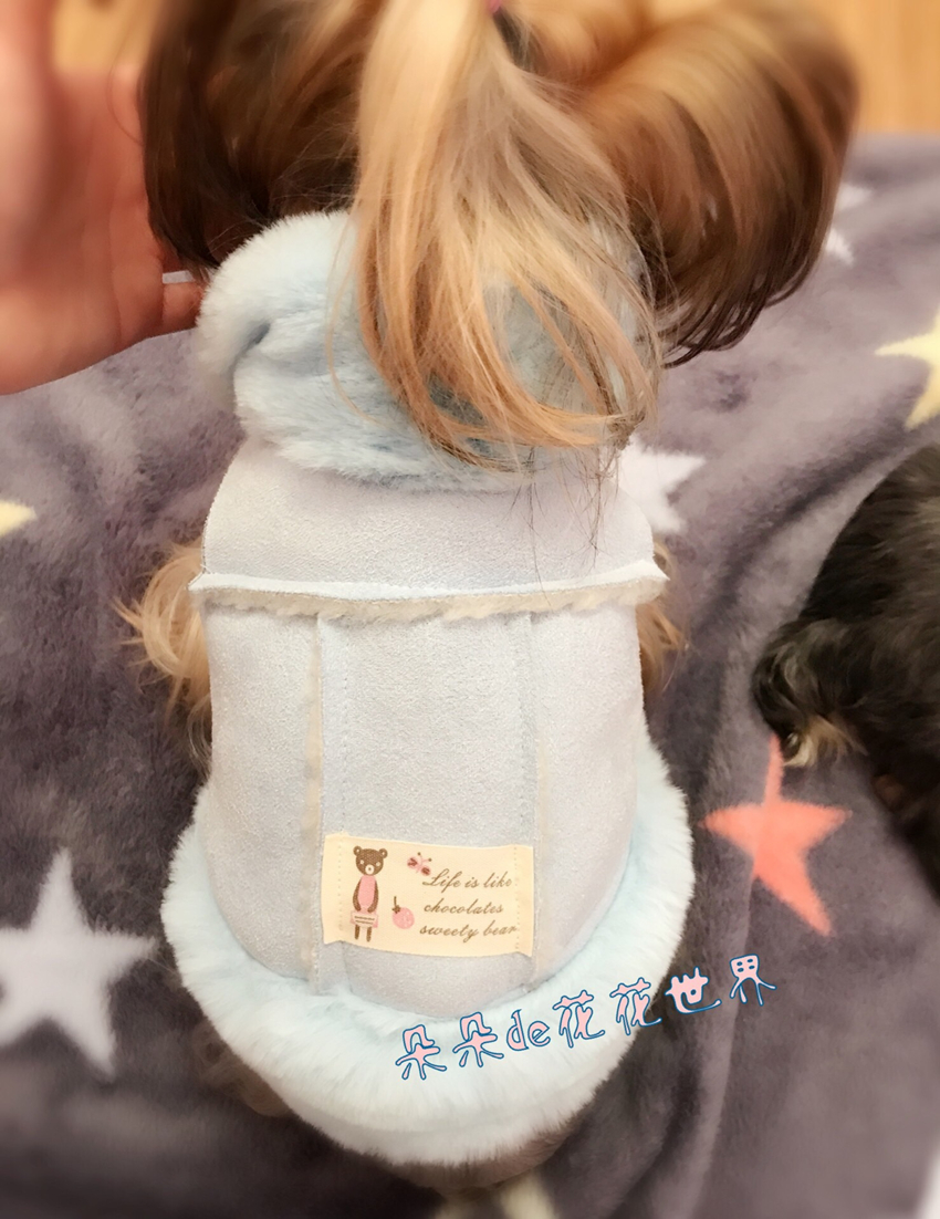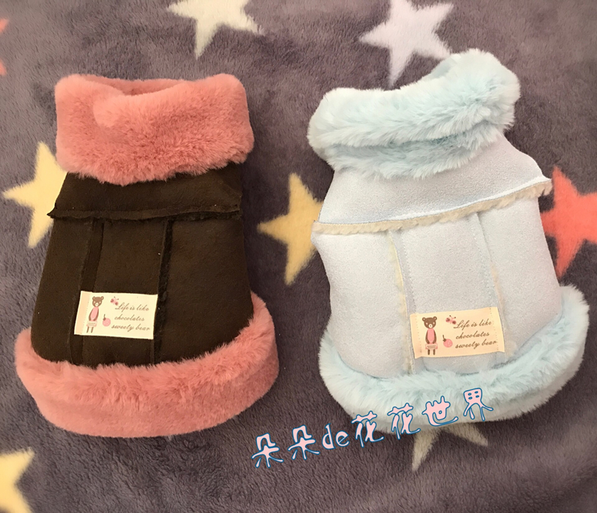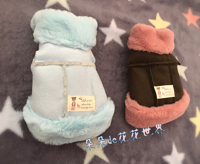 J handmade pet cat dog teddy yorkshire pony winter suede grass locomotive suit coat cotton clothes