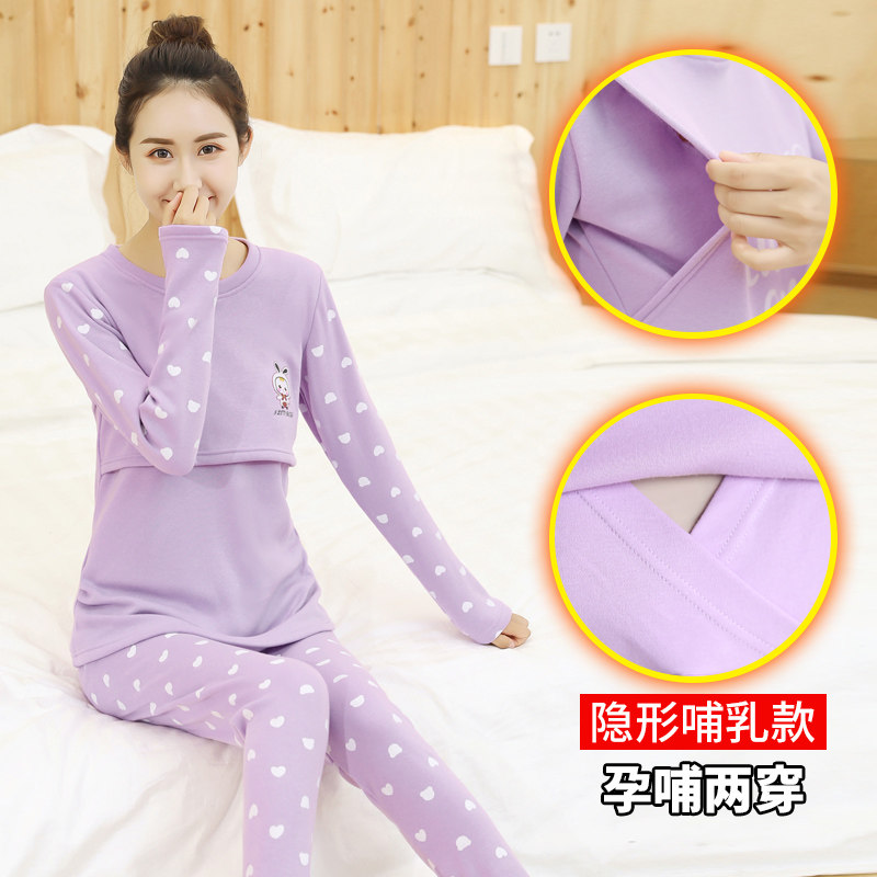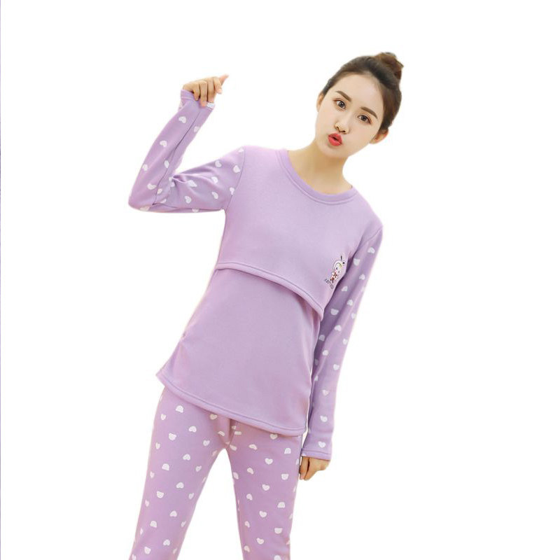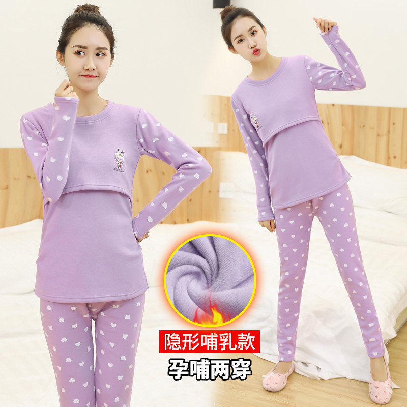 Pregnant Woman Sleepwear Plus Suede Thickened Breastfeeding Winter Warm Moon Subsuit For Postpartum Breastfeeding Suit Home Clothing