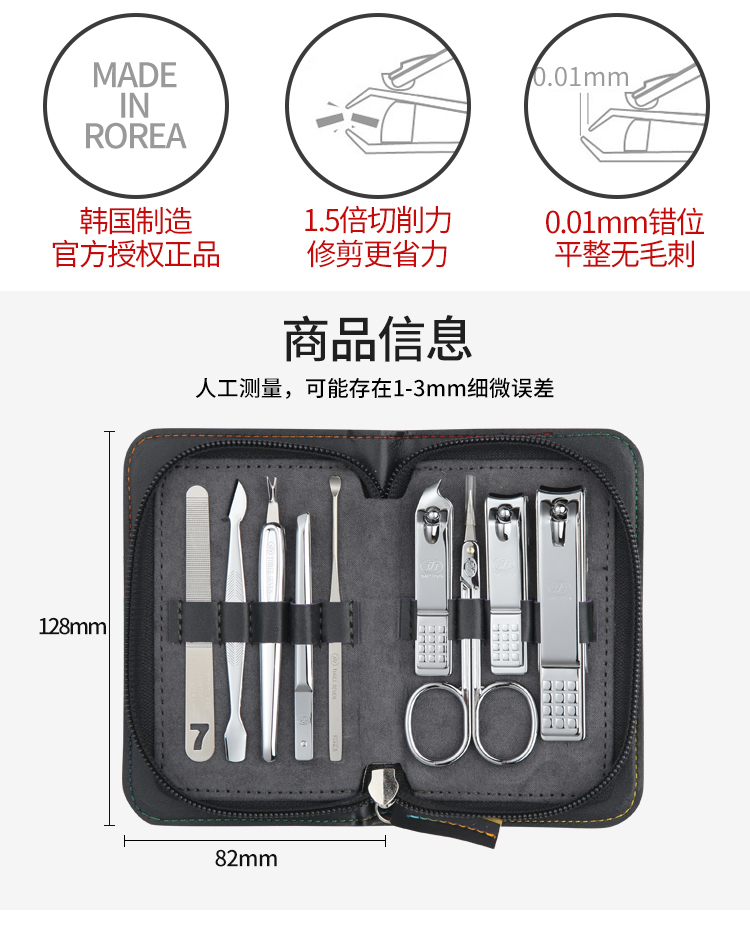 Korea 777 Imported Nail Clipper Set Large Toenail Scissors Slanted Nail Clipper Household Manicure Tools 9 Pieces