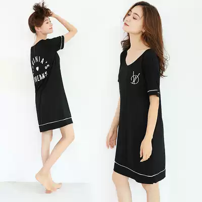 Summer night dress net red explosion 2021 new thin modal pure cotton short-sleeved pajamas female fat mm home clothes
