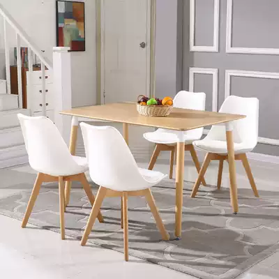 Log color dining table Nordic simple dining table and chair combination small apartment table Modern solid wood dining table negotiation small round table