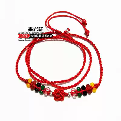 The five elements of the same heart knot this year red waist refining 925 silver beads natural cinnabar red waist rope men and women