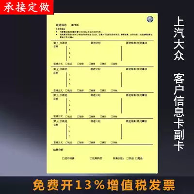 Car 4S store SAIC FOSS Yellow Card customer information card Main card sub-card sales department customer information table Jusheng