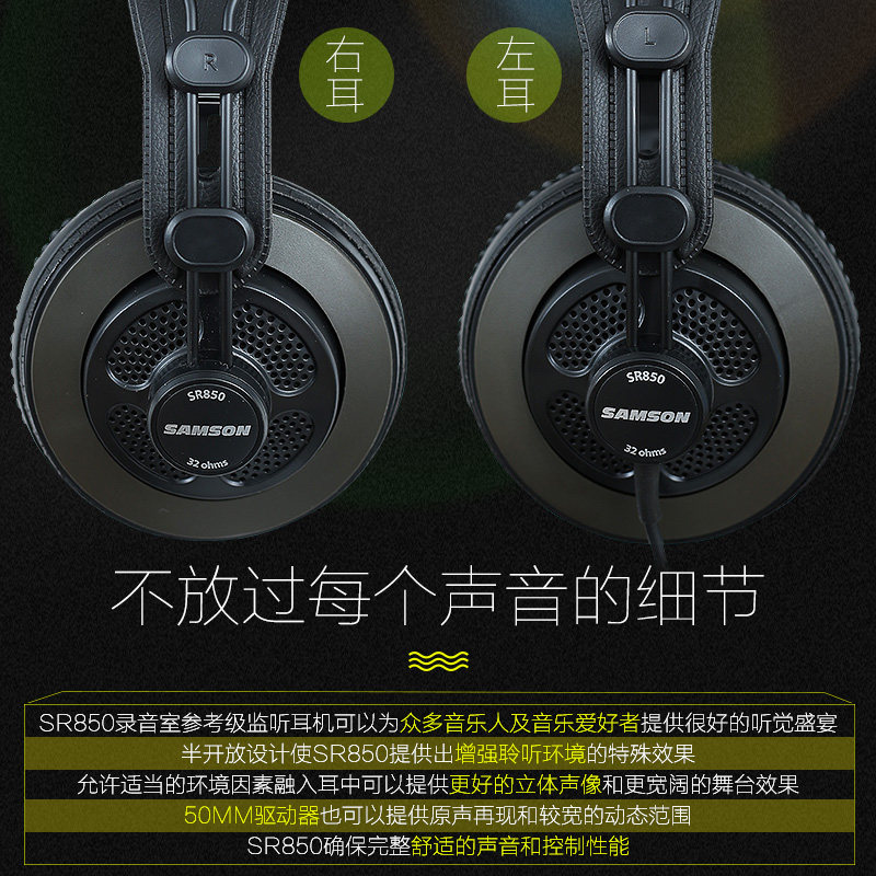 SAMSON SR850 Monitor Headphones Semi-open head-mounted leather ear tips Singing recording headphones