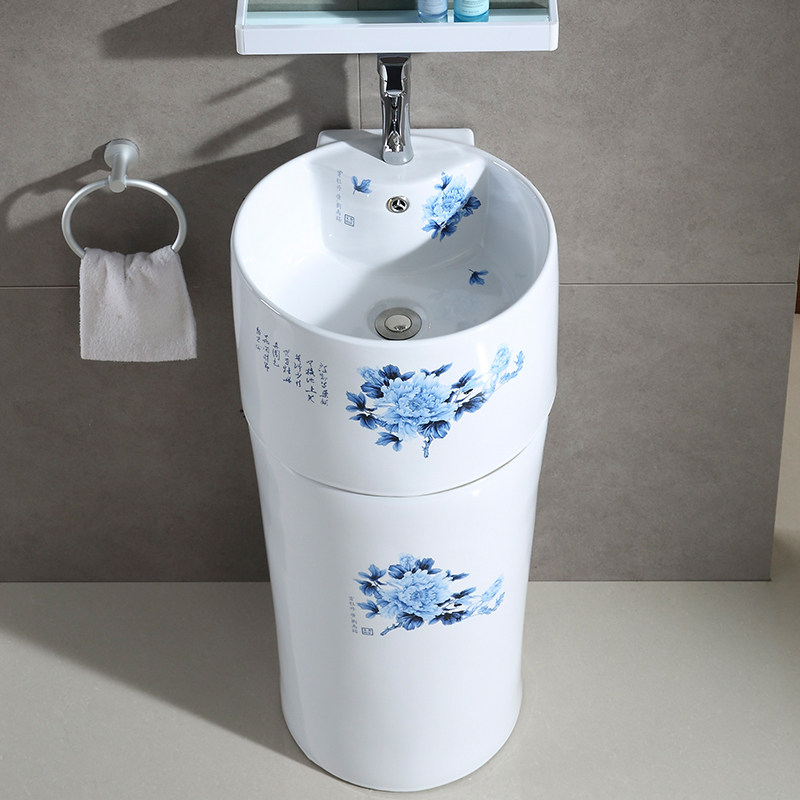 Blue peony column basin(free water accessories)Lily column basin (free water accessories)Blue Peony column basin single cold faucet angle valve Blue Peony column basin hot and cold faucet angle valve Lily column basin single cold faucet angle valve