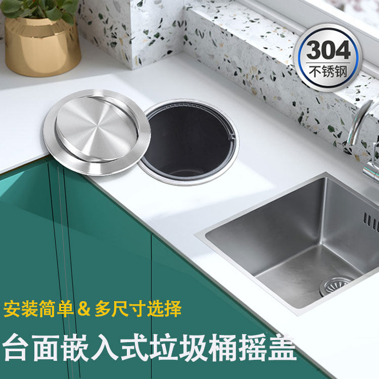 304 stainless steel countertop cover embedded trash can cover decorative cover kitchen powder room square round shake cover