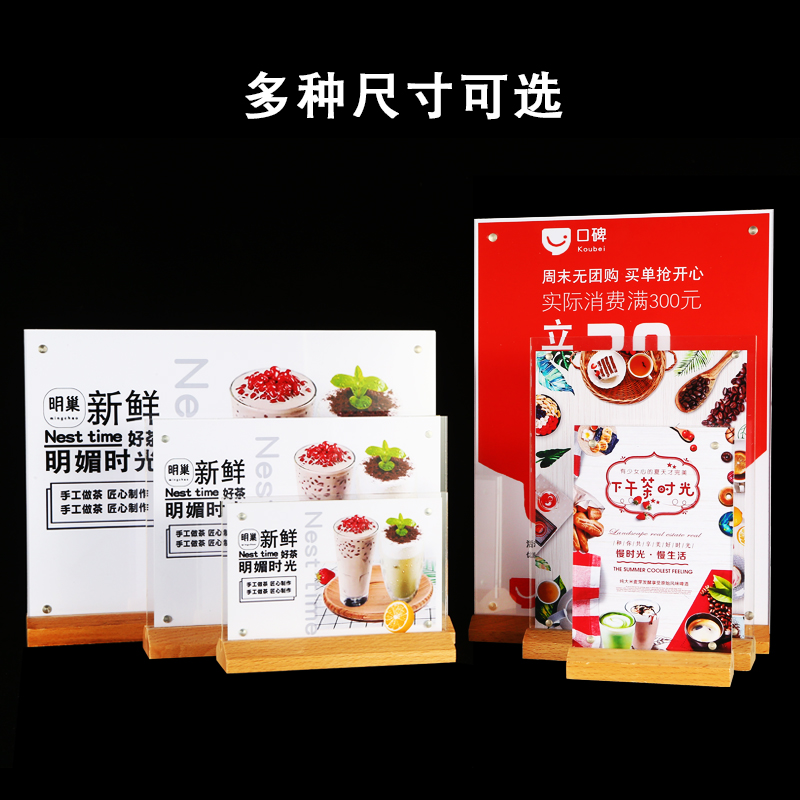 Wooden base table card desktop display table plate double strong magnetic acrylic table card holder display card a4 upright table log beech wood