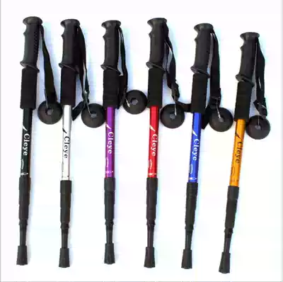 Mountaineering stick outdoor equipment aluminum alloy four-section shock absorber straight handle T-handle hiking crutches for the elderly walking stick