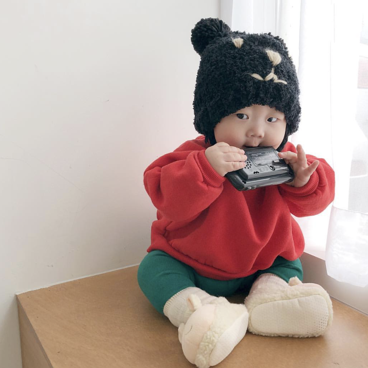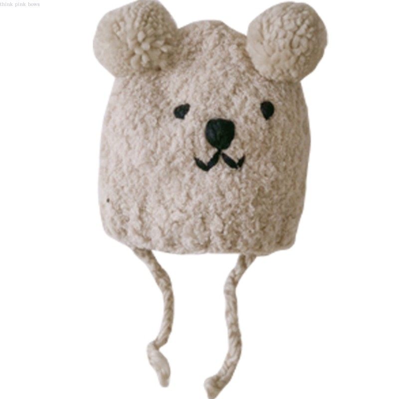 New autumn and winter children knit hat cartoon handmade small bear cap male and female baby protective ear cover head cap baby warm hat